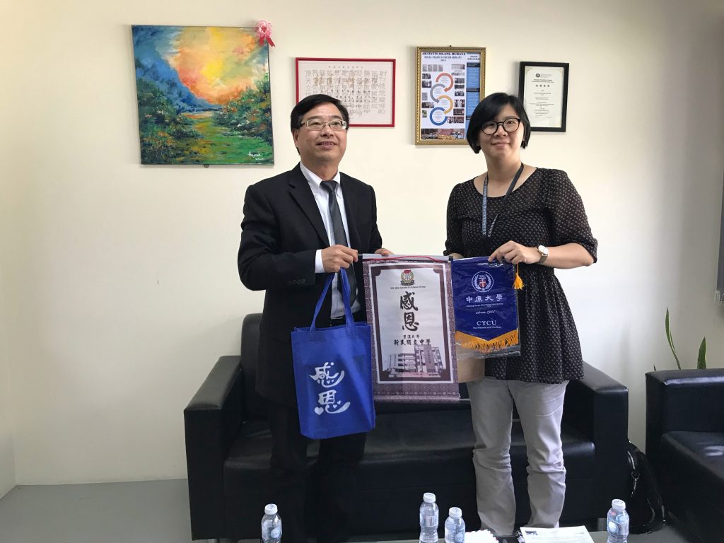 中原大学资讯管理学系教授兼职涯发展长皮世明博士与郭秭嘉副校长交换纪念品