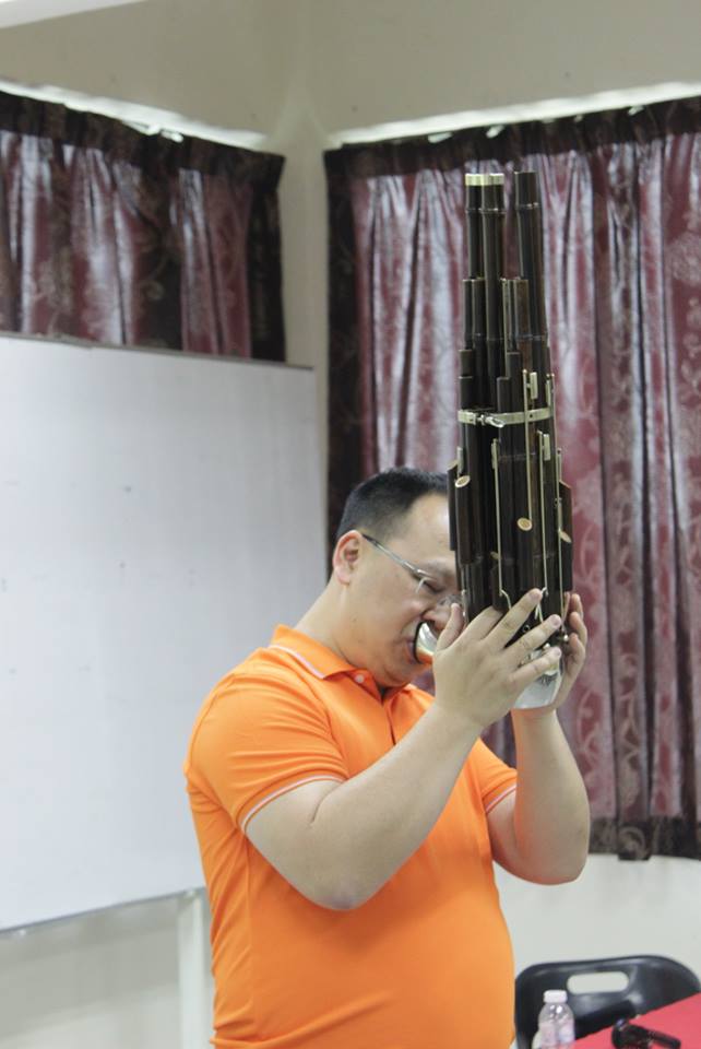 接着,郭老师与学员们分享笙的历史渊源。他表示,笙的历史最早可以追溯到先秦时期。而成语“滥竽充数” 中的“竽”,就是笙的一种。他也说笙在漫长的中华历史中,已经渐渐地从宫廷乐器流传至民间。而他也表示古代的笙经过近代的几位演奏家的细心改良及大胆创新,进而发展出各种各样可以适应不同乐曲需要的笙。