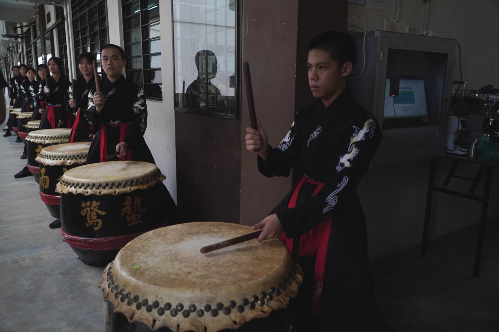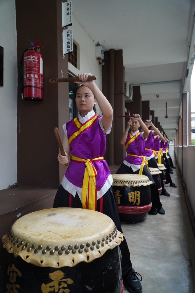 本校用阵阵鼓声来表达热烈欢迎宾客的心意。